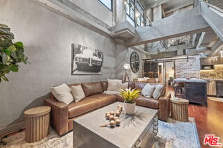 A rare offering in the historic 1924 Toy Factory, situated in the heat of LA's Art District. This striking loft pairs vintage architectural elements with sleek modern-industrial styling, delivering a perfect balance of character and comfort. Perched on the 6th floor with coveted south-facing exposure, this true live/work residence is flooded with natural light and showcases city views, dramatic 11-foot ceilings, polished concrete floors, and central HVAC. The expansive living space is anchored by a chef-inspired custom kitchen featuring quartz countertops, stainless steel appliances, smart switches and an oversized island with breakfast bar, ideal for both everyday living and elevated entertaining. A generous dining area flows into a private office with floor-to-ceiling built-in bookshelves, offering a versatile space for work, media, or creative use. A dedicated guest room provides comfort and privacy for visiting friends or family. The primary bedroom features a large walk-in closet, while the nicely sized bathroom is appointed with dual vanities, a deep soaking tub, and an integrated laundry area with washer and dryer. Additional enhancements include a custom-built wall of storage with an integrated desk, thoughtfully designed to maximize both style and function. Oversized industrial windows line the living room and are framed by custom pull-down shades, capturing sun-drenched southern light and framing sweeping urban views throughout the day. Residents of Toy Factory Lofts enjoy a professionally managed, amenity-rich community with 24-hour security and concierge service, a first-level fitness center with yoga loft and Pilates reformer, and a convenient neighborhood market just next door. The third-floor garden lounge offers BBQ areas, while the rooftop deck features a resort-style pool (currently under renovation), private cabanas, fire pit, and breathtaking 360-degree panoramic views of Downtown Los Angeles. The neighborhood is patrolled by the BID's (L.A. Downtown Industrial Business Improvement District) Public Safety Services via bike and vehicle. The unit includes one deeded subterranean parking space equipped with an electric vehicle charger. Private storage is available for an additional charge per month, with optional additional parking available on Mateo Street.